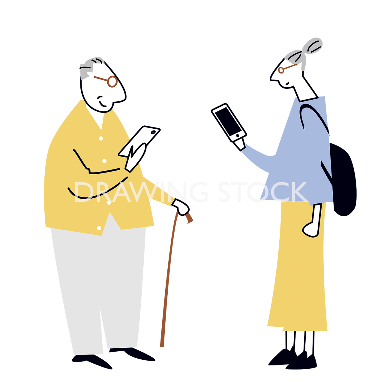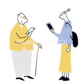 立ってスマホを見ている高齢男性と女性