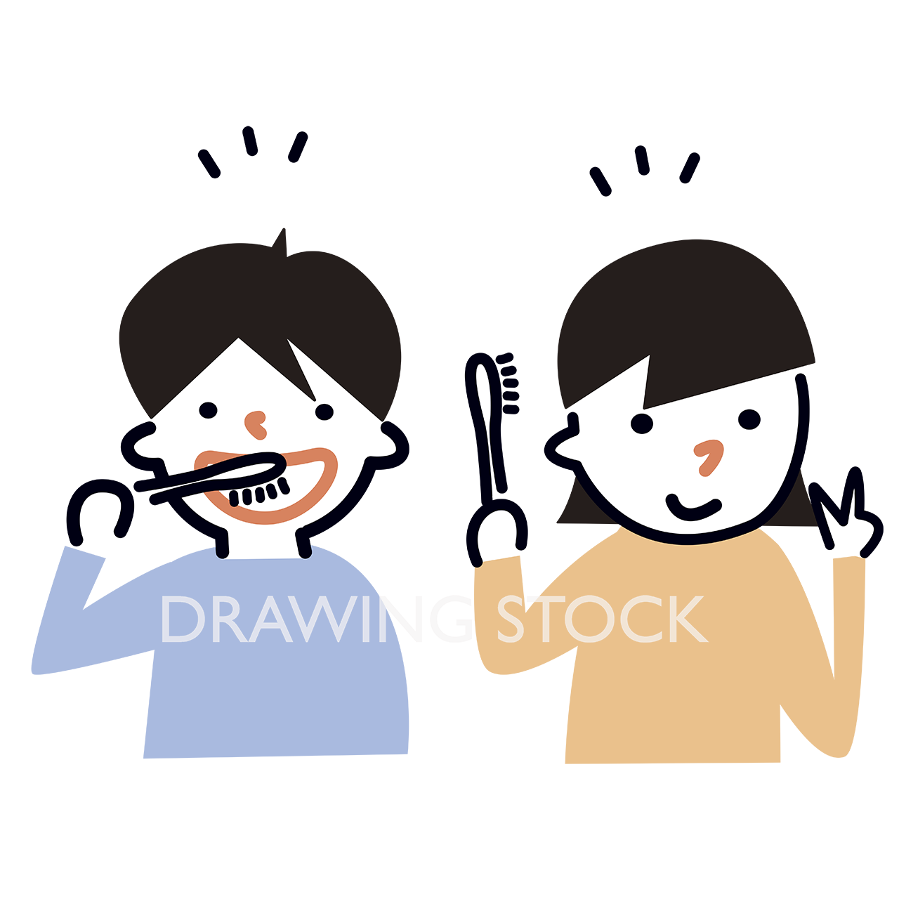 楽しみながら歯磨きをする男女の子供のバストアップ正面