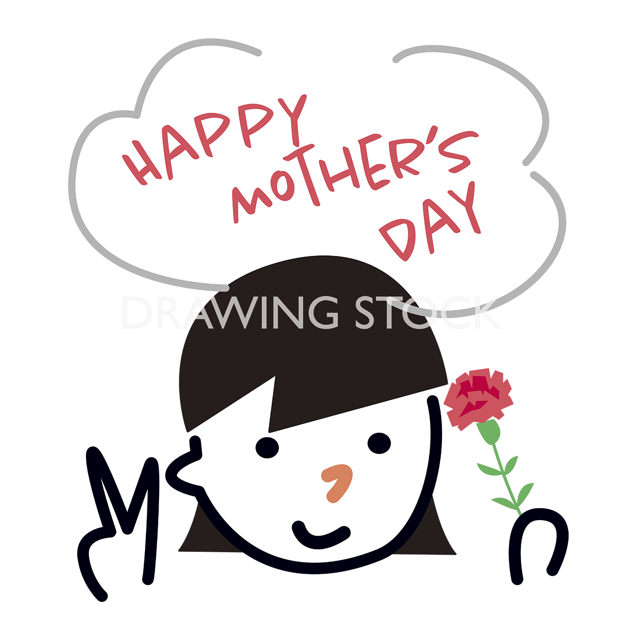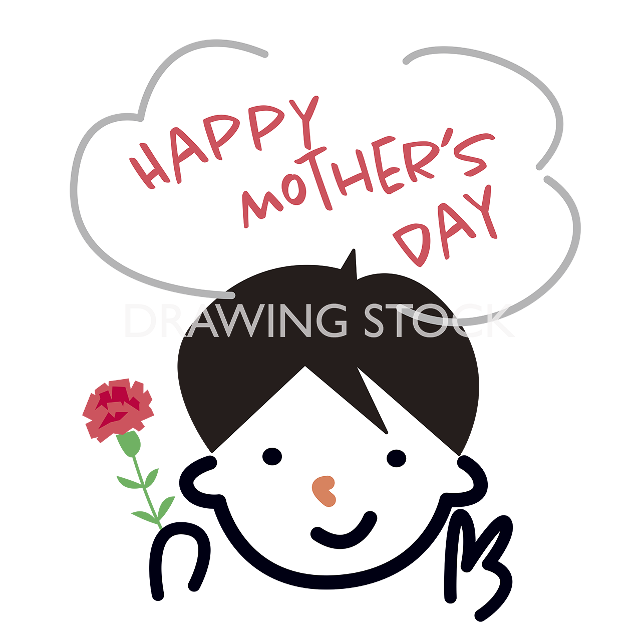 HAPPY MOTHER’S DAYでカーネーションをお母さんに贈ろうとする子供男女