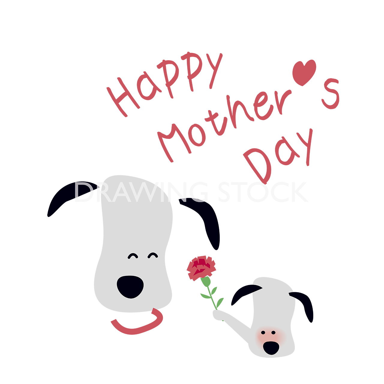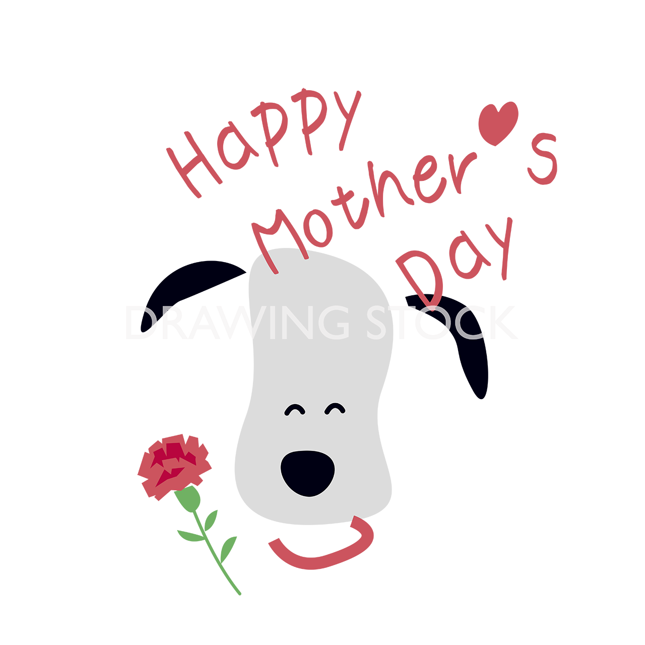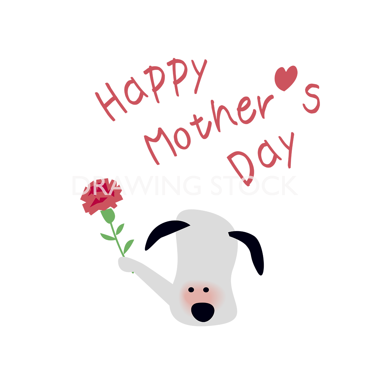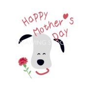 HAPPY MOTHER’S DAYでカーネーションをお母さんに贈ろうとする子犬のアイコン